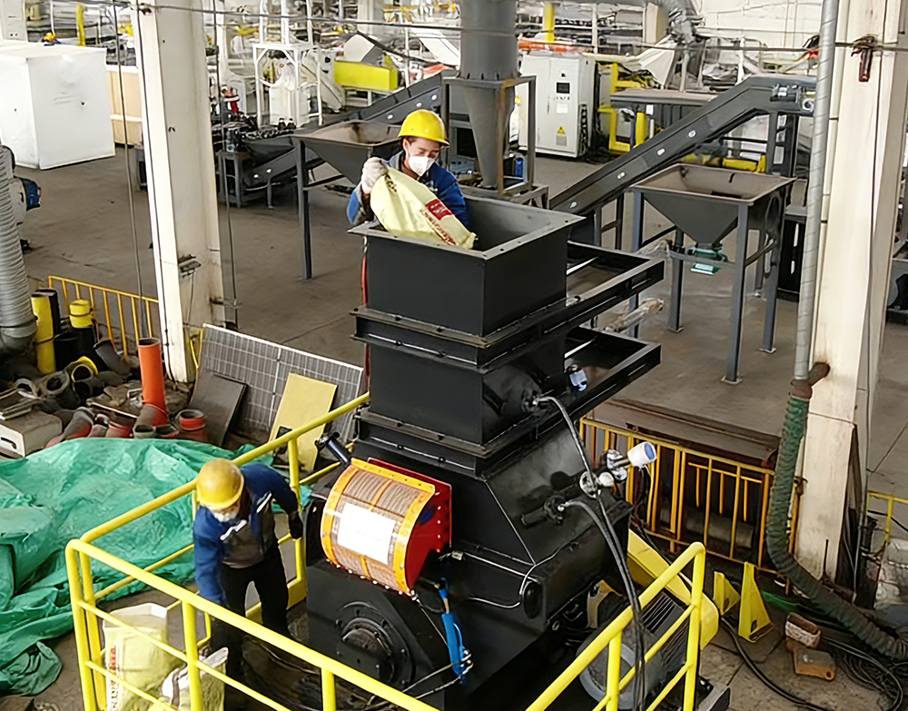 單軸撕碎機(jī)用于鋰電池回收設(shè)備中,作為第一級(jí)粉碎使用,主要作用是將鋰電池的封裝外殼配撕開(kāi),同時(shí)將電池卷芯撕碎,讓電池各組分散開(kāi),方便后續(xù)的烘干、碳化、分選等。在此過(guò)程中會(huì)有部分正負(fù)極黑粉脫落,注意收塵。